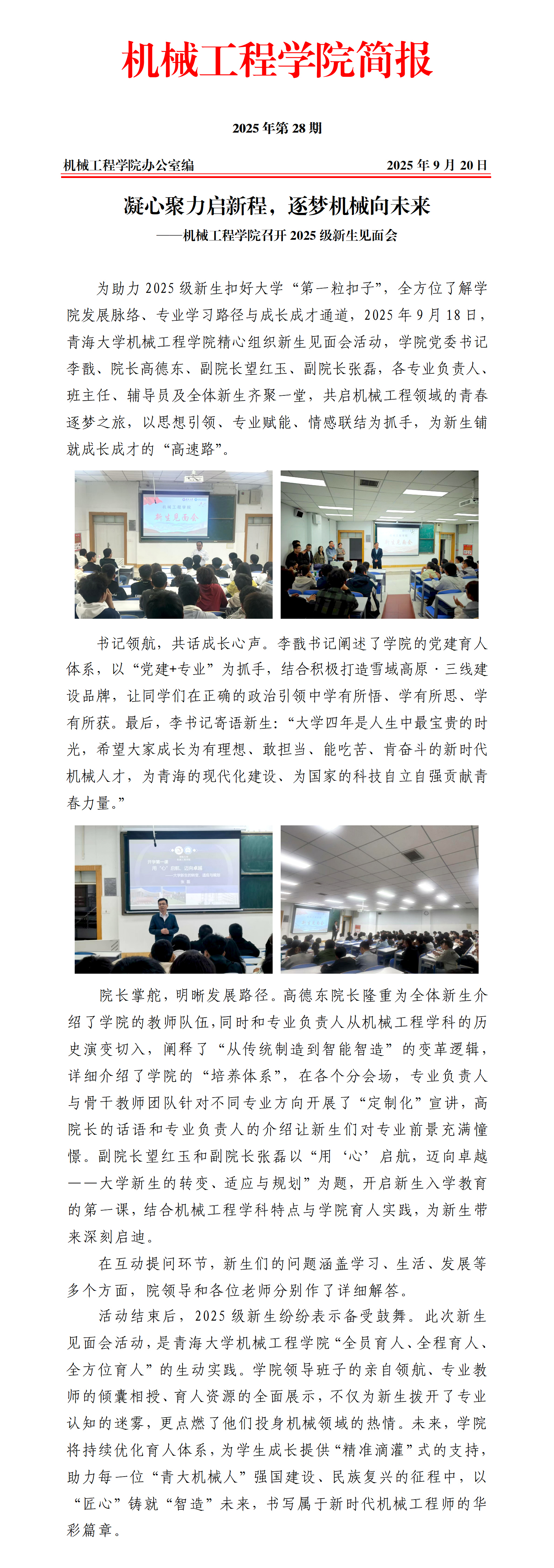 凝心聚力启新程,逐梦机械向未来 —— m6体育 召开2025级新生见面会